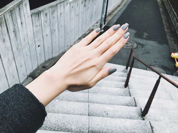 白黒はっきりつけないグレーのネイル「Cloudy」。
